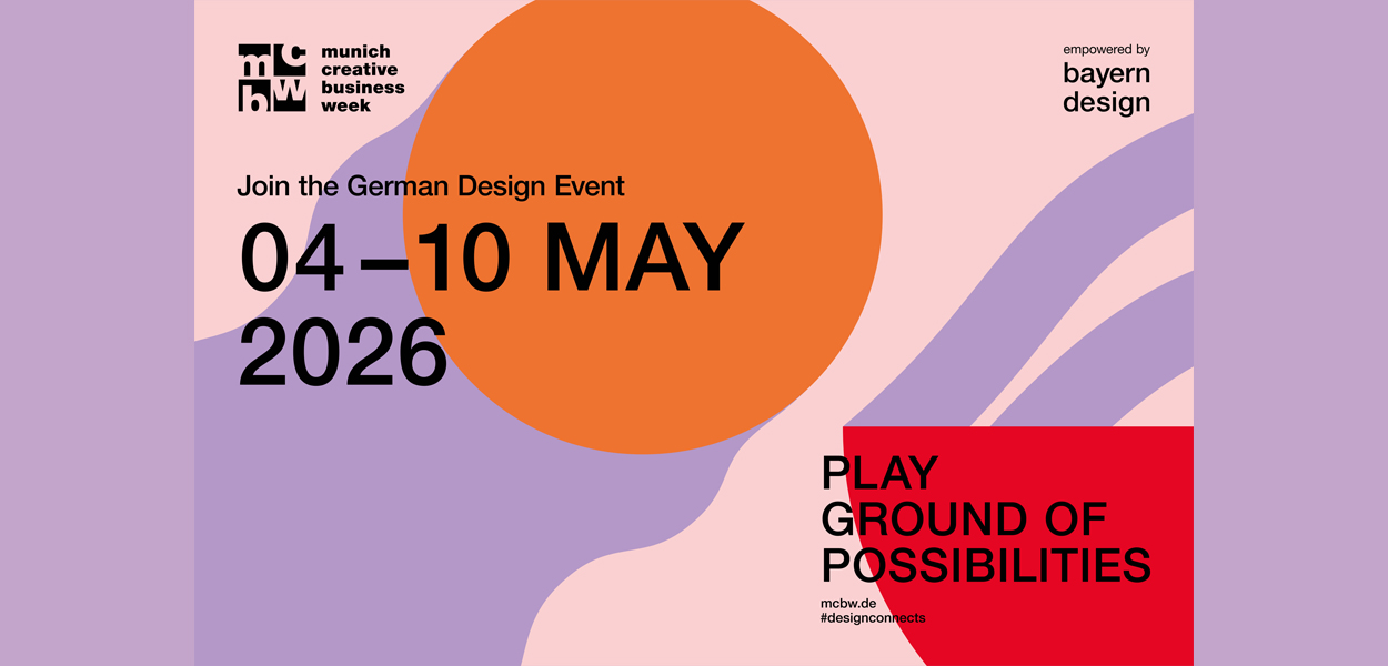 Die von Bayern Design veranstaltete Munich Creative Business Week (MCBW) ist Deutschlands größter Designevent. Sie findet vom 4. bis 10. Mai 2026 zum 15. Mal in München statt und richtet sich mit einem vielfältigen, hochkarätigen Programm an ein Fachpublikum und an die designinteressierte Öffentlichkeit. Ein brandaktuelles gesellschaftsrelevantes Jahresmotto und eine stadtweite programmliche und visuelle Präsenz machen München auch 2026 wieder zu der deutschen Plattform für neue Ideen und Trends des Creative Business.