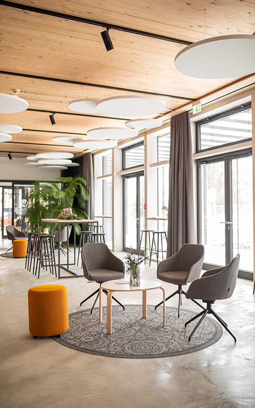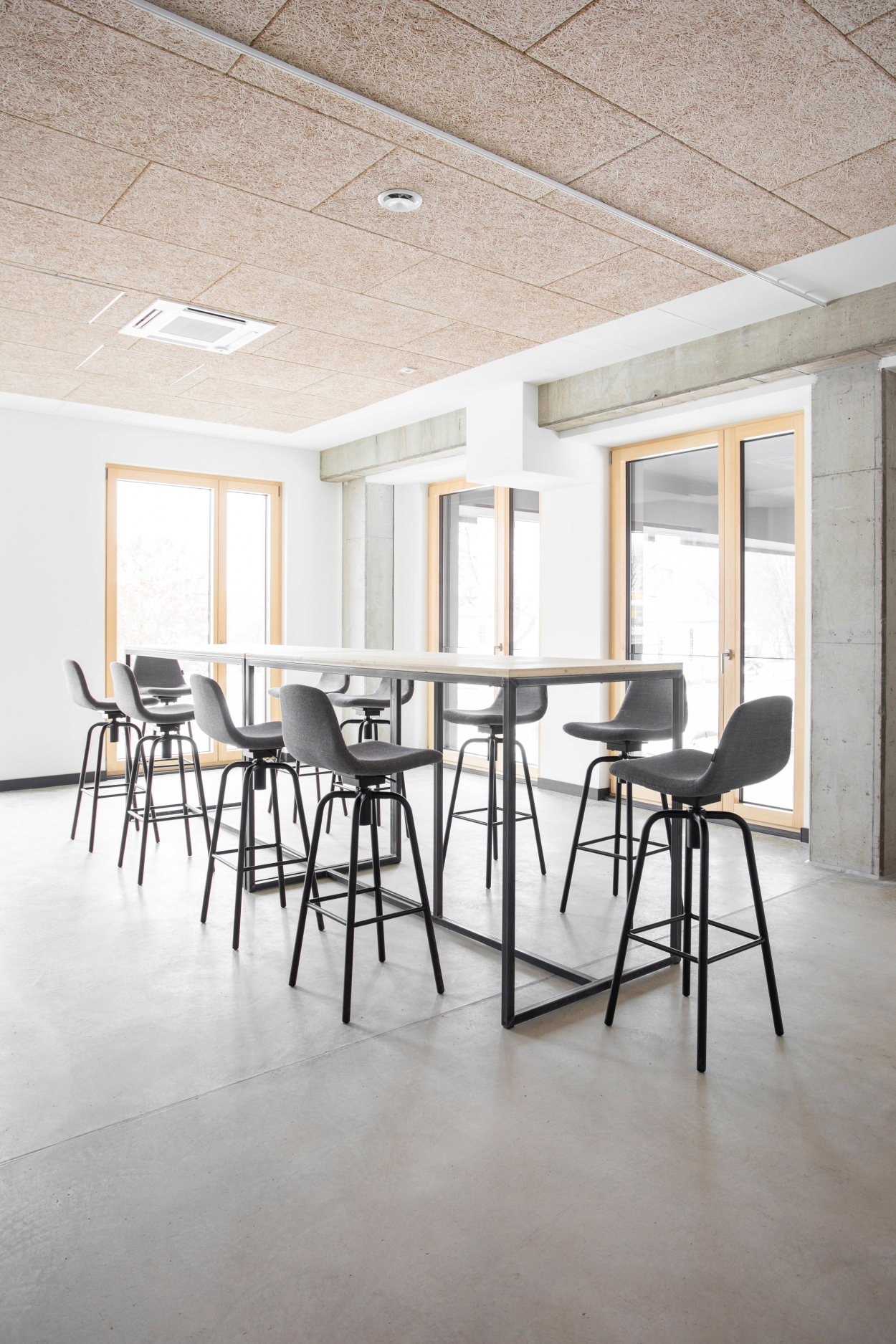 Mit der großzügigen und freundlichen Lounge- und Meetingzone richtet sich das Hotel auch an Businessreisende, Co-Worker oder Schüler und Studenten, die einen Ort zum temporären Arbeiten suchen. Teil der Lounge sind die "W-Lounge High", mehrere Sitzgruppen aus dem "W-Cube 5" und ein mit "W-Cube 6 stool H"-Hochsitzern gesäumter Teamtisch.