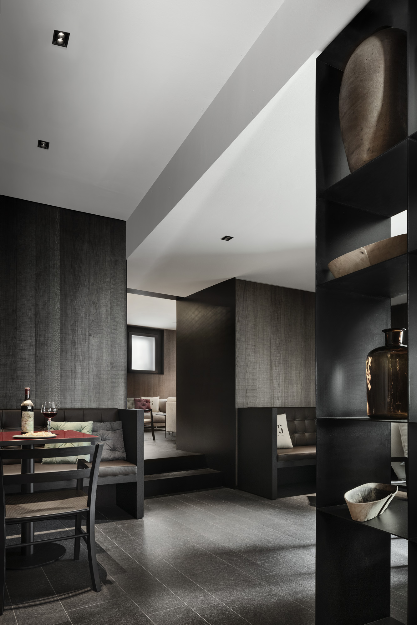 Die Weinbar 75 Café & Lounge im Bergkurort Ponte di Legno (Brescia) verbindet rustikalen Charme mit Mailänder Chic. Das Team des Mailänder Architekten und Designers Piero Lissoni zeichnet sowohl für die Restaurierung des für die Region typischen Wohngebäudes als auch für die Neugestaltung der Innenräume verantwortlich.
