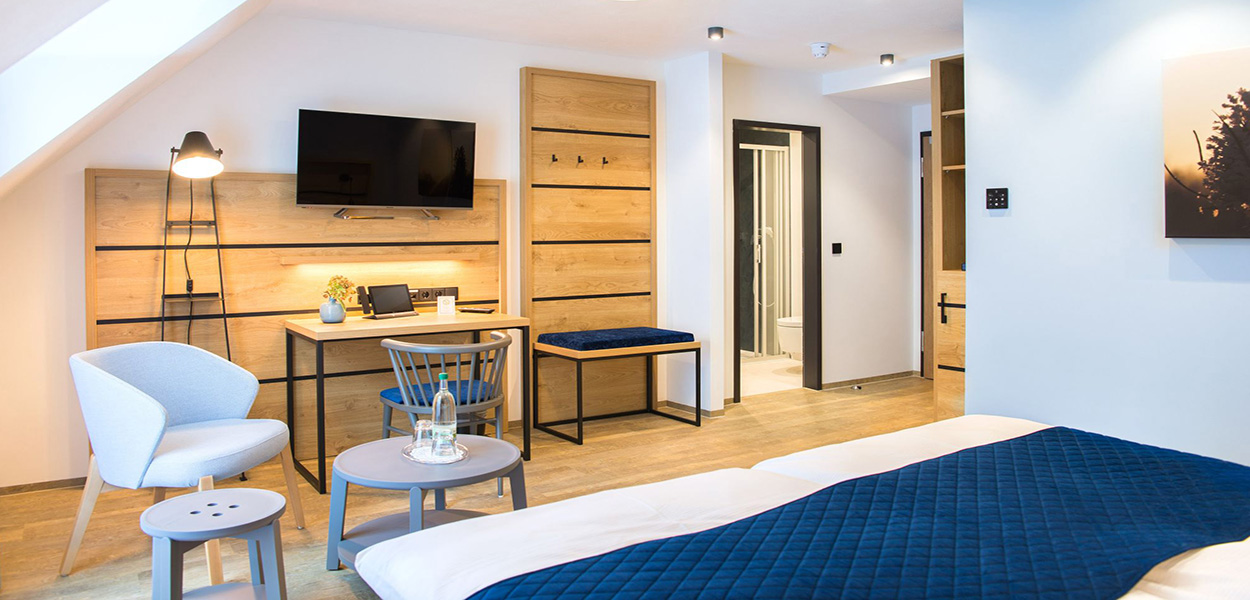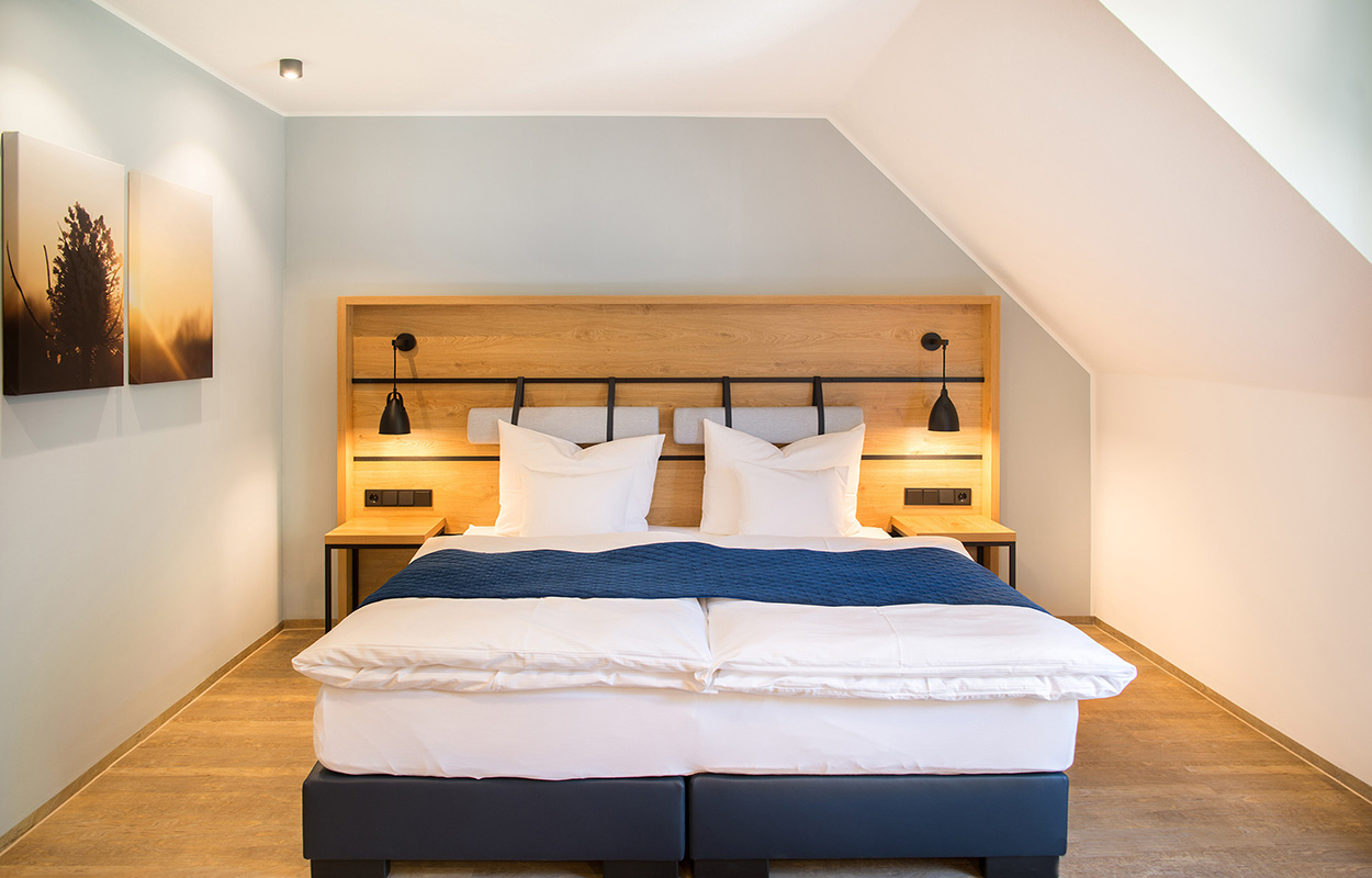 Auch im Hotelzimmer tief durchatmen können: Die Naturklimadecke im Aktivhotel Inselsberg reguliert Luftfeuchtigkeit und Raumklima.