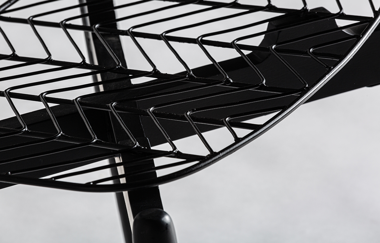 Für den Aufhänger der Kollektion, den "Plissé Metal Chair", übersetzte Ferrero die Dreidimensionalität des Faltenwurfs ins Zweidimensionale. Entstanden ist ein graphisches Design aus gezackten Linien, das als Eisengeflecht Rückenlehne und Sitzfläche des "Chairs" formt. Für Ferrero ist die Metall-Adaption des Faltenwurfs so etwas wie die Quintessenz seiner Auseinandersetzung mit Form und Technik des Plissés.