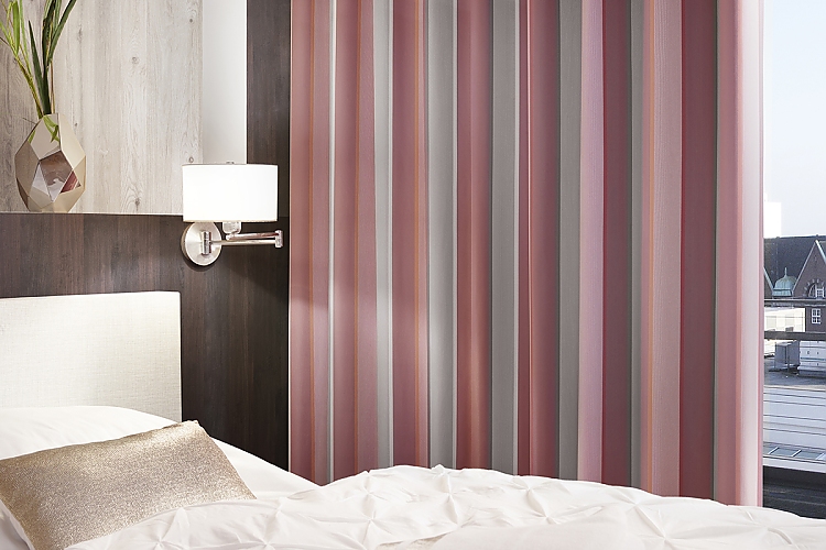 Der Blockstreifen dieses raumhohen, zeitlosen Dimouts aus dem Hause Drapilux als Nachfolger eines Klassikers scheint auf den ersten Blick schlicht, entpuppt sich bei näherem Betrachten jedoch als vielfarbiger, filigraner Hingucker. Denn obwohl nur vier Farben eingesetzt werden, werden mehrere sichtbar. Das Geheimnis: Jede Farbe wird mit jeder kombiniert und kommt zusätzlich noch als Einzelfarbe zum Einsatz. Mit seinem ca. 30 cm breiten Rapport eignet sich der Stoff „17703" auch für kleinere Fenster, so wie sie unter anderem im Kreuzfahrtschiff-Bereich vorkommen. Aber auch in klassischen und modernen Hotels macht er eine gute Figur.