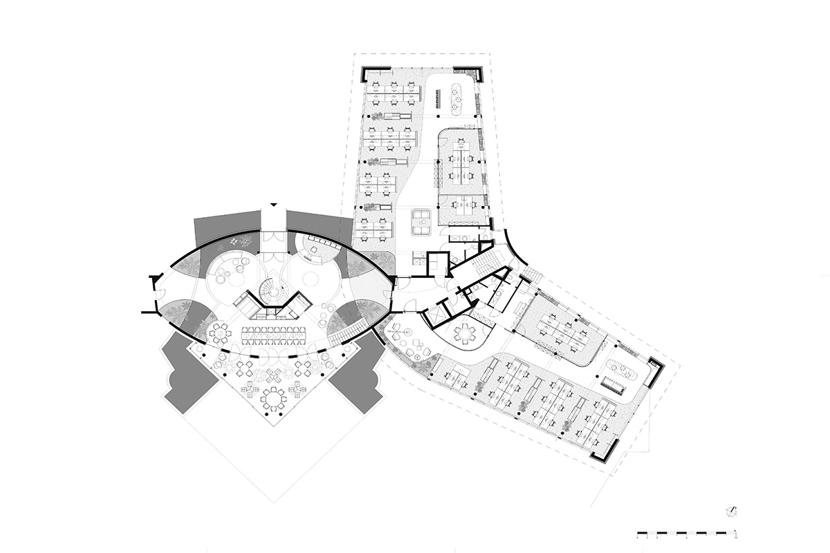 Insgesamt wurde viel Raum für Kommunikation geschaffen – das war ein ausdrücklicher Wunsch der Mitarbeiter, ist aber auch eine Anforderung der sich wandelnden Arbeitskultur, in der sowohl Informationsaustausch als auch Zusammengehörigkeitsgefühl eine große Rolle spielen.