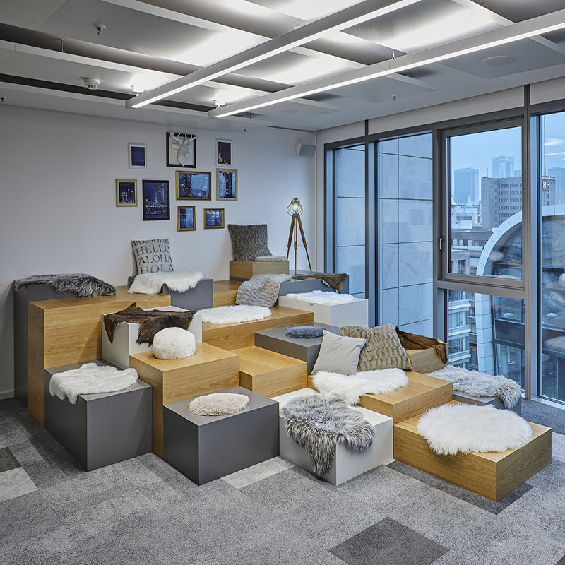 Der Standort in Frankfurt am Main ist der größte Sitz der Agentur in Deutschland. Analog zu den Büros in Augsburg, Düsseldorf, Hamburg und München galt es auch hier, ein richtungsweisendes Konzept für die Arbeitswelt von morgen zu entwickeln.