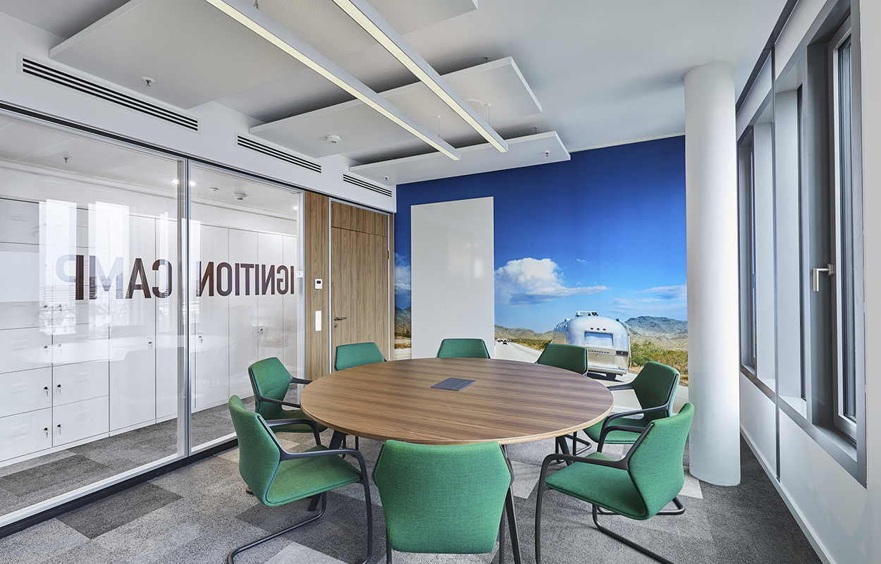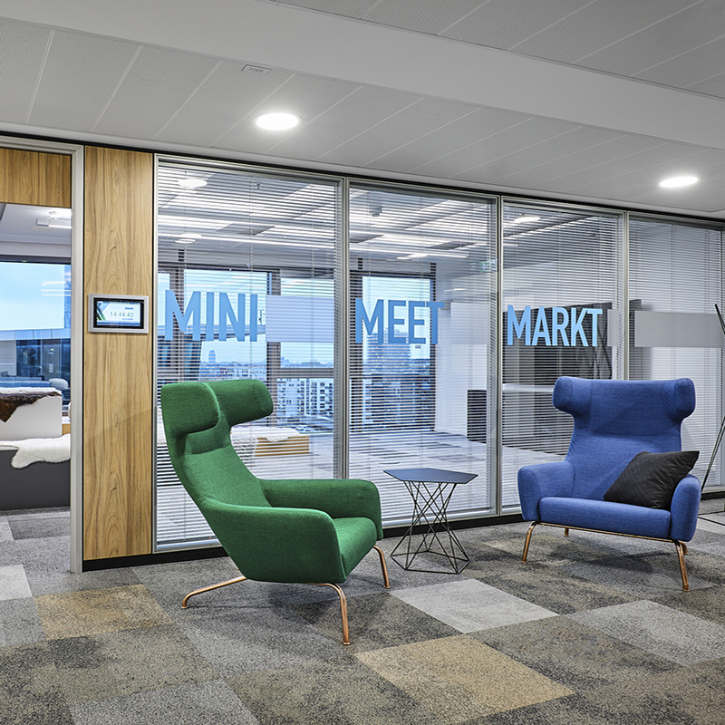 Auf vier Etagen und 7.000 Quadratmetern können die rund 500 Mitarbeiter wählen, ob sie ihre Tätigkeit in der "Nerd Zone", dem "Class Room", "Chat Room", oder im "Ignition Camp" verrichten wollen, oder ob Ambiete und Ausstattung der Räume "Heart Beat", "Hang Loose" oder "Mini Market" nicht doch besser den gerade anstehenden Anforderungen gerecht werden.