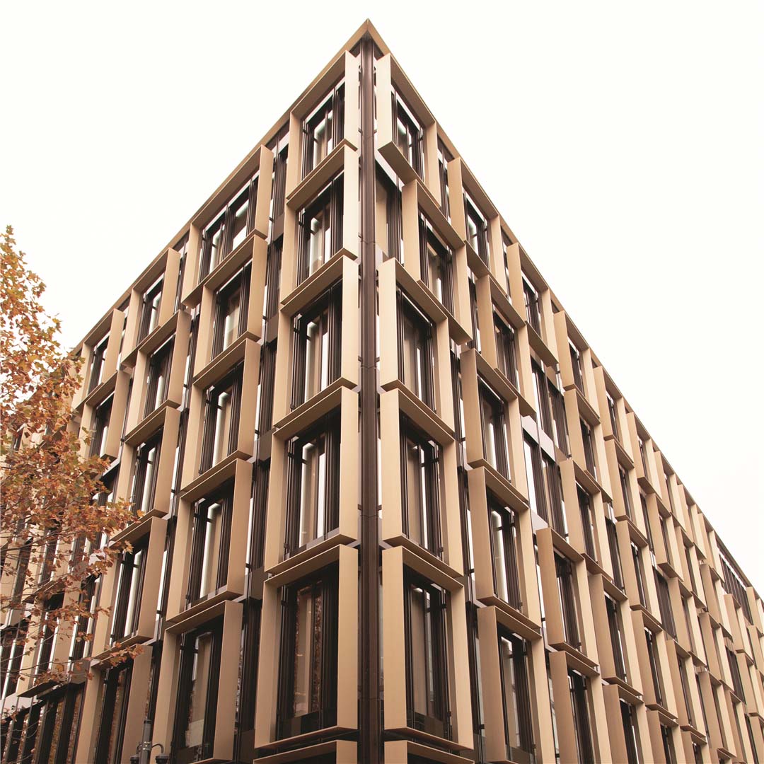 Eingehüllt in eine gold-bronzene Rahmenfassade ist das "Nove" ein Schmuckstück am Arnulfbogen. Fotos: Design Offices