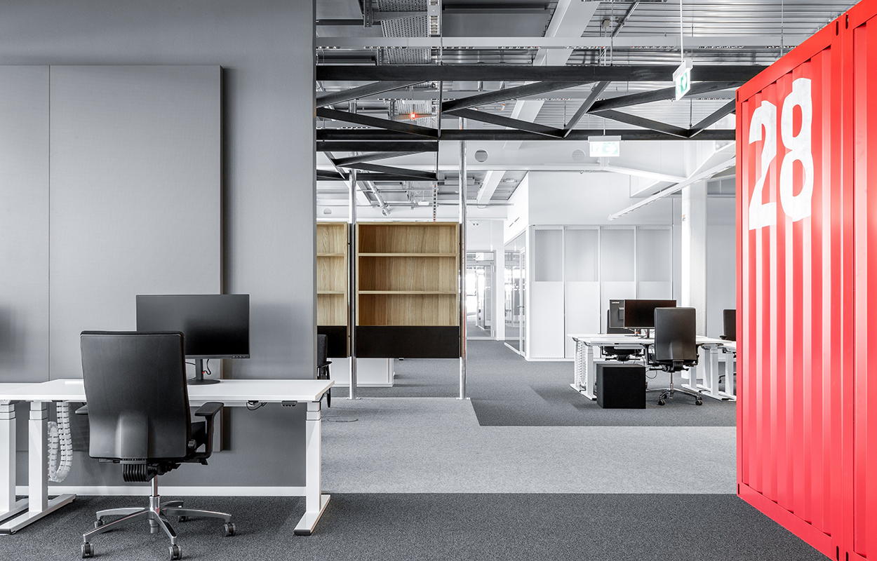 Das Raumkonzept für den neuen Standort im Hafenbogen wurde inhouse entwickelt und schafft mit unterschiedlichen Formaten für diverse Arbeitstypen und Kommunikationsanlässe größtmögliche Vielfalt in der Wahl des Arbeitsplatzes.