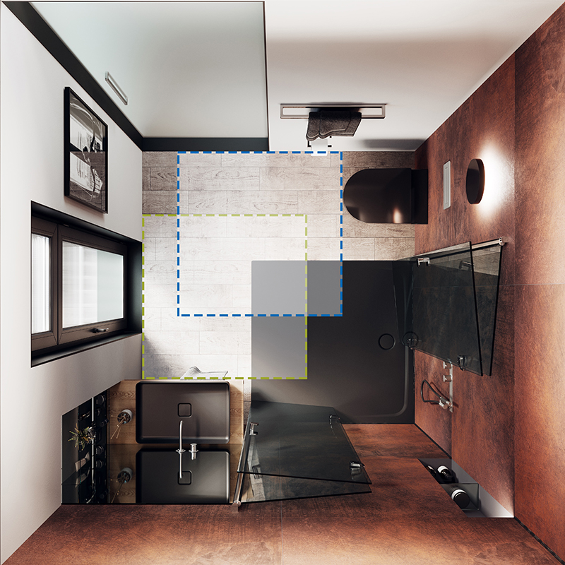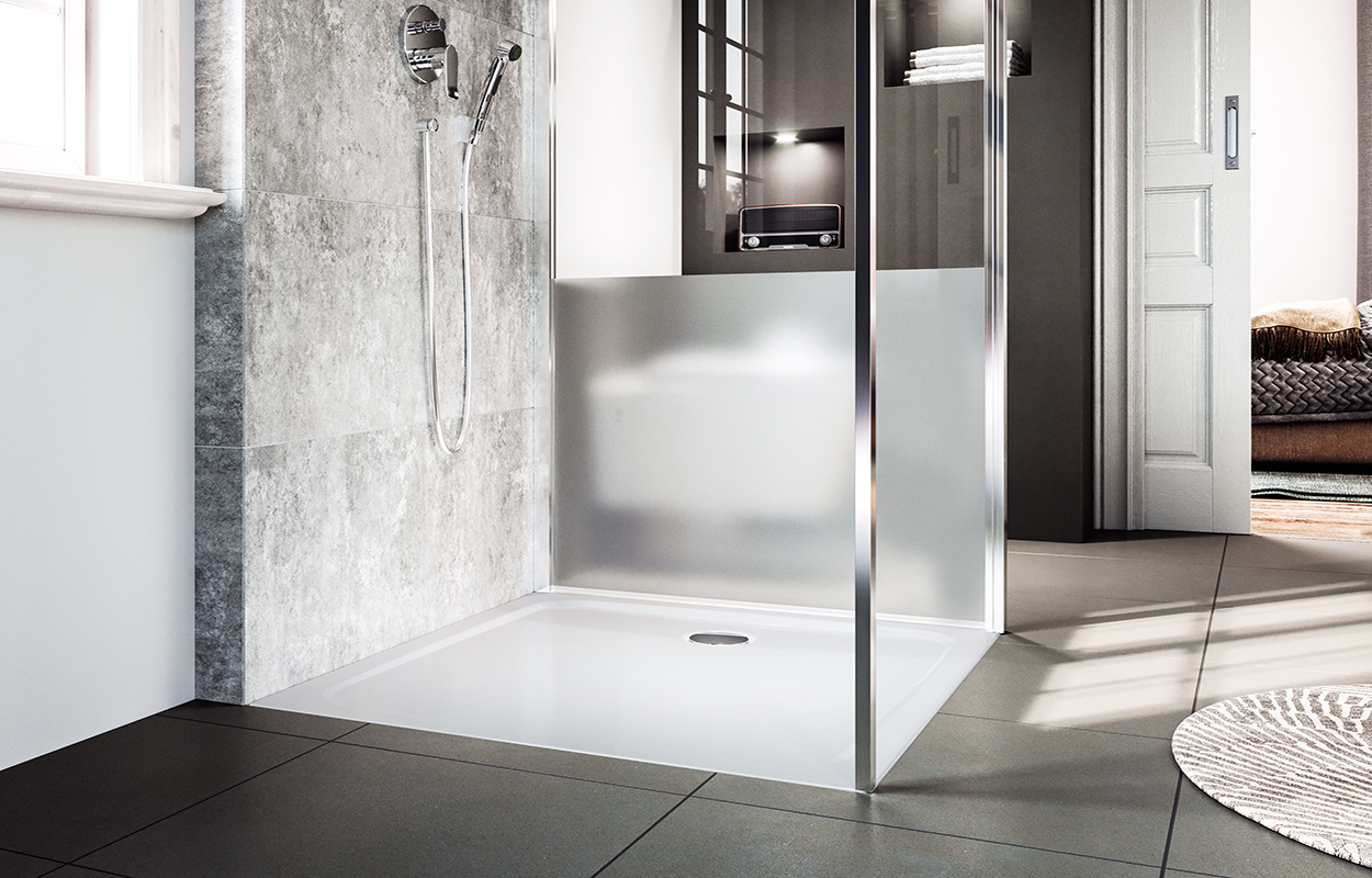 Barrierefreie Bäder lassen sich auch auf kleinem Raum umsetzen. Die bodenebene Duschfläche "Cayonoplan Multispace" von Kaldewei ist mit einem Durchmesser von 120 x 120 Zentimetern Bewegungs- und Duschfläche in einem und entspricht damit der DIN-Norm 18040-2 zur Barrierefreiheit. Da das Modell keine fixierte Abtrennung benötigt, kann die Duschfläche nämlich zugleich der Bewegungsfläche im Bad hinzugerechnet werden. Die mit "SecurePlus" veredelte Fläche ist gemäß Bewertungsgruppe B der DIN-Norm rutschhemmend, hebt sich auch in der Haptik von der Umgebung deutlich ab und lässt sich schwellenfrei verlegen. Darüberhinaus fordern DIN-konforme Bäder eine Farbgestaltung mit deutlichen Kontrasten, die auch bei Sehschwäche eine gute Orientierung bieten.