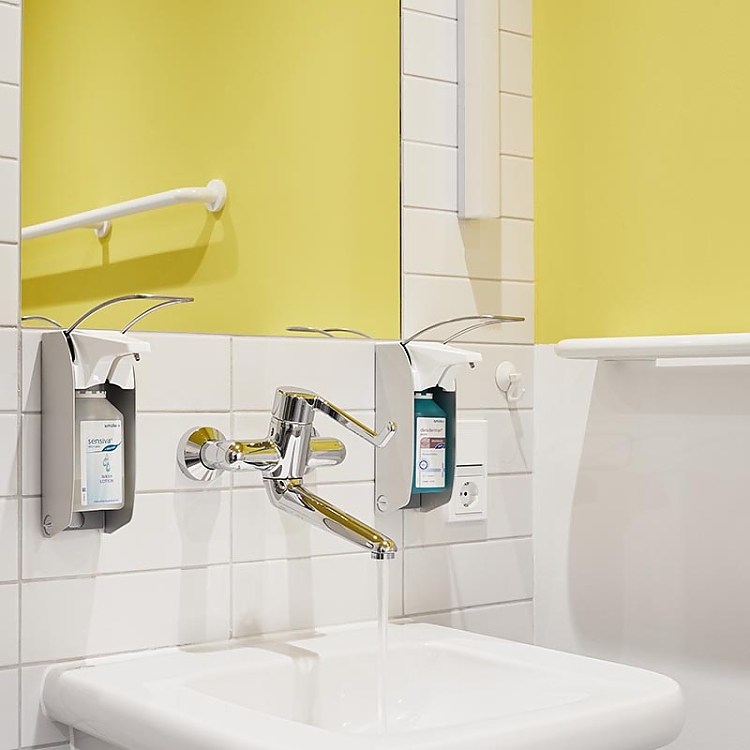Die "Idealrain Pro"-Dusche ist aus Hygienegründen mit einem nicht verstellbaren, aerosolarmen Brausekopf ausgestattet. "Um einen bestimmten hygienischen Standard zu halten, tauschen wir zudem vorsorglich Schläuche und Duschköpfe mindestens einmal jährlich komplett aus. Daher kommen auch die Wirtschaftlichkeit und die langfristige Verfügbarkeit im Sortiment von Ideal Standard in unsere Anforderungskriterien hinein", so Gaschler.