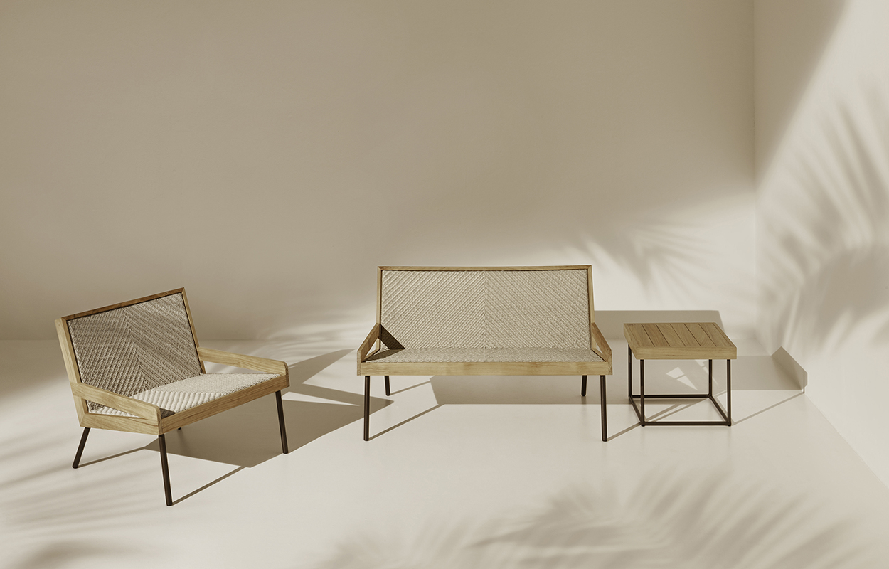 Die Kollektion "Allaperto" ist ein Ergebnis der Zusammenarbeit von Ethimo sowie den Designern Matteo Thun und Antonio Rodriguez. Die beiden Designer verleihen den Einzelstücken immer wieder neue "Outfits", mit denen die Möbel ihr Umfeld interpretieren. Neu sind die beiden Moods "Veranda" und "Nautic". Das Geflecht aus natürlichem Rattan des "Allaperto Veranda" eignet sich für Übergangsbereiche zwischen Indoor und Outdoor - wie Arkaden oder Verandas. Das Geflecht ist vollständig von Hand gefertigt und strahlt echte Handwerkskunst mit einem Hauch Vintage-Charakter aus.