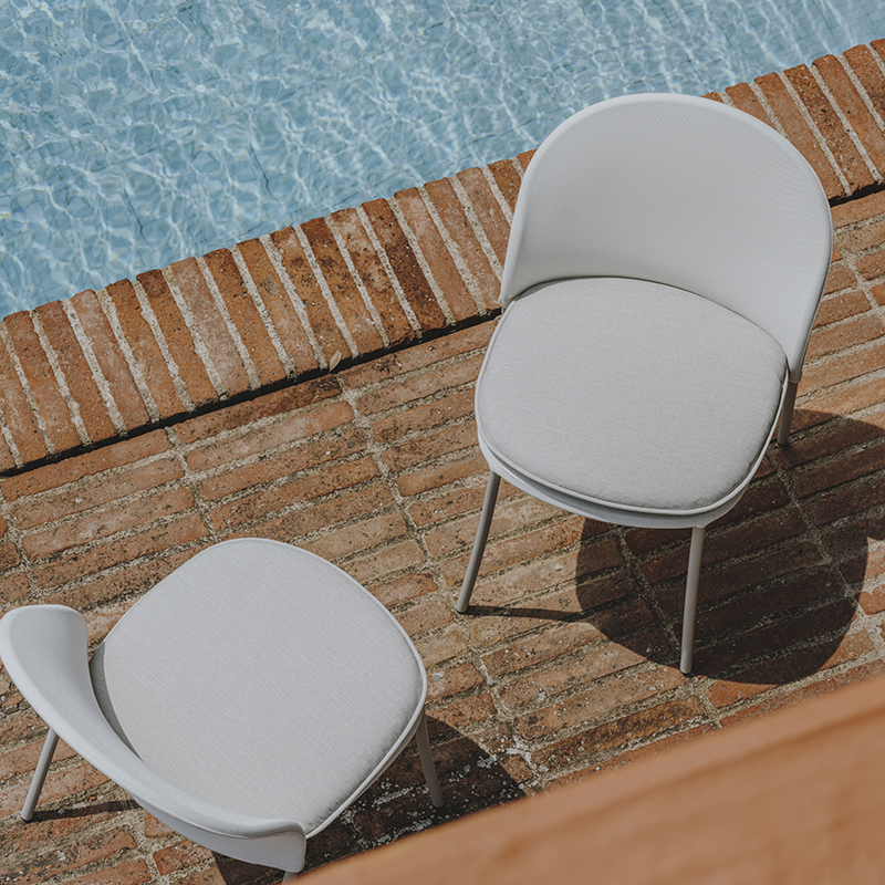 Mit seinen neuen Designerstühlen lotet der spanische Hersteller Expormim die Grenzen zwischen Innen- und Außenraummöblierung aus. Modelle wie der Rattansessel "Armadillo" von Mut Design oder der Stuhl "Frames" mit geflochtener Rückenlehne und Sitzfläche von James Hayon wirken wie klassische Verandamöbel, sind aber für den Innenbereich konzipiert. Umgekehrt folgen die neuen Outdoor-Modelle "Blum" von Manel Molina und "Petale" von Mut Design den runden Formen klassischer Cocktailsessel, mit konischen Beinen und geschwungenen Rückenlehnen, die sich zu Armlehnen verjüngen. Das einzige, was sie von ihren Vorbildern unterscheidet, ist ihr Material:"Petale" wird aus rostfreiem Stahlrohr und Textil hergestellt, "Blum" aus Aluminium.