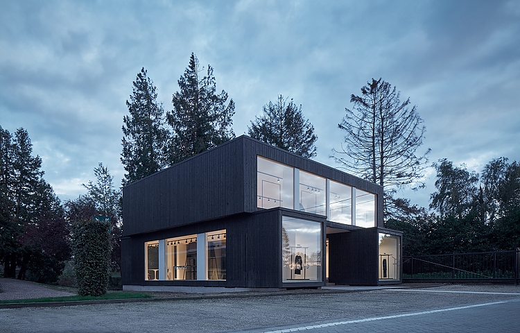 Die Alain Broekaert Gruppe, kurz GAB, ist eine führende Textilmarke im Benelux-Markt. Mit den Modelabels Pepe Jeans, Scotch & Soda, Hackett London, Karl Lagerfeld, Façonnable und McGregor steht sie für international angesagte Designermode, produziert aber auch 40 eigene Modelinien. Um die Vielzahl der Marken adäquat zu präsentieren, war am Hauptsitz im belgischen Ternat ein neuer Showroom nötig geworden. Für einen Erweiterungsbau war keine Zeit, deshalb unterschied sich die Geschäftsführung für das modulare Holzcontainer-Konzept von Ark-Shelter.