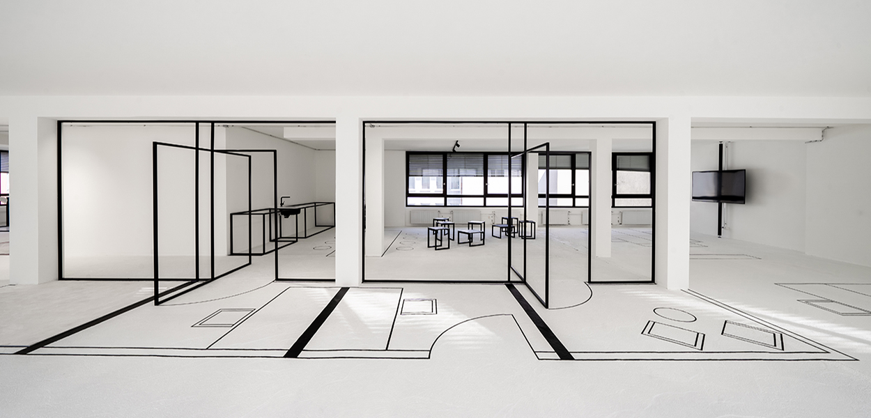 Im Showroom zum Münchner Bürokomplex "Fritz" nutzte CSMM die Gelegenheit, den Rohbau und damit den Beton "pur" in Szene zu setzen. | Fotos: Gleb Polovnykov