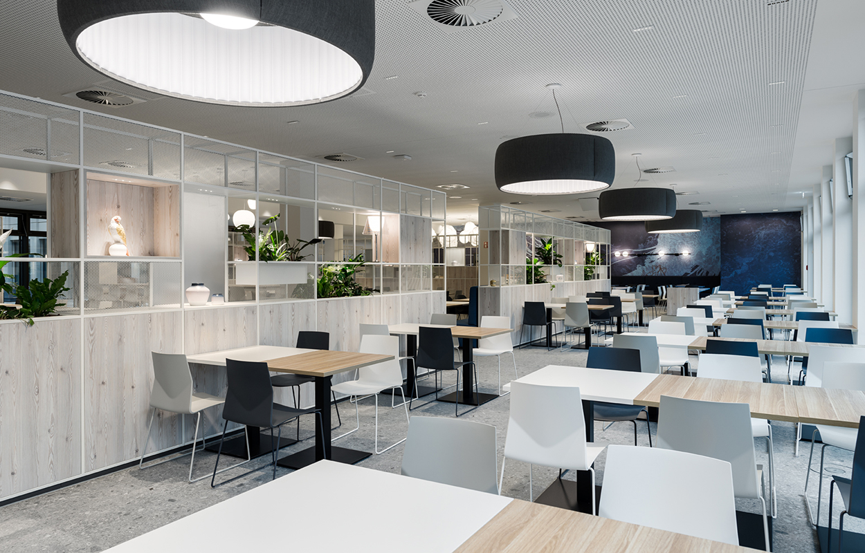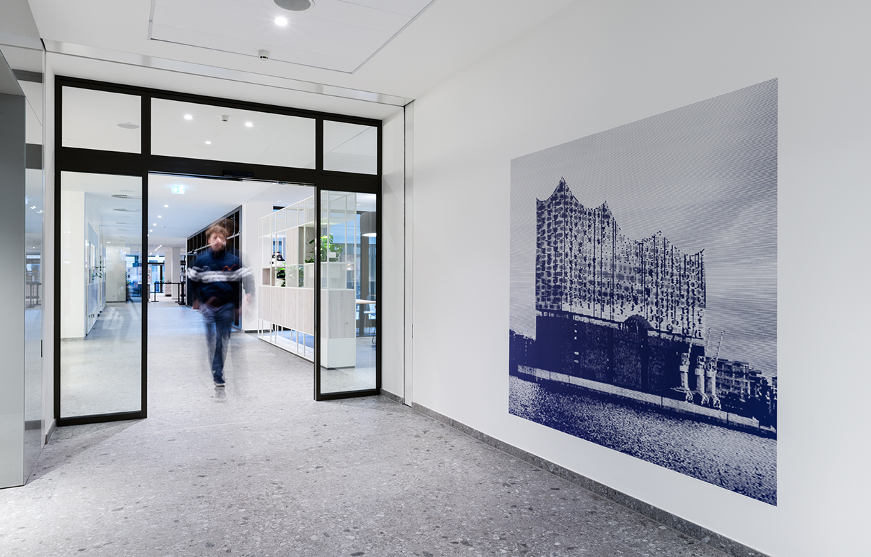 Das Ziel des Hamburger Planungsbüros sbp war es daher, durch eine attraktive Umgebung die Zufriedenheit jedes Einzelnen zu steigern, sowie Stressfaktoren und Konzentrationsbeeinträchtigungen zu minimieren. Für die Gestaltung orientierten sich die Planer am Biophilen Design, das die positive Ausstrahlung, die natürliche Umgebungen auf den Menschen haben, in unterschiedlichen Ausprägungen auf das Gebäude und seine Räume transferiert.