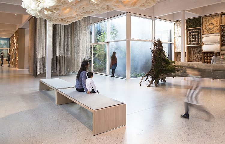 Die Materialien des Bestandsgebäudes wurden recycelt im Neubau wieder eingesetzt. Die neu benötigten Materialien bestehend aus 80% Holz und 95% erdölfreien Materialien wie Schafwolle wurden gezielt aus oberösterreichischer Produktion ausgewählt. 13 mit unterschiedlichen Waldvegetationen bepflanzte Lichthöfe und eine zurückhaltende Holzarchitektur machen die Verbundenheit mit Landschaft und Natur auch im Inneren spürbar, sorgen für eine natürliche Belichtung und Belüftung und dienen gleichzeitig als Sonnenschutz für die verglasten Räume.