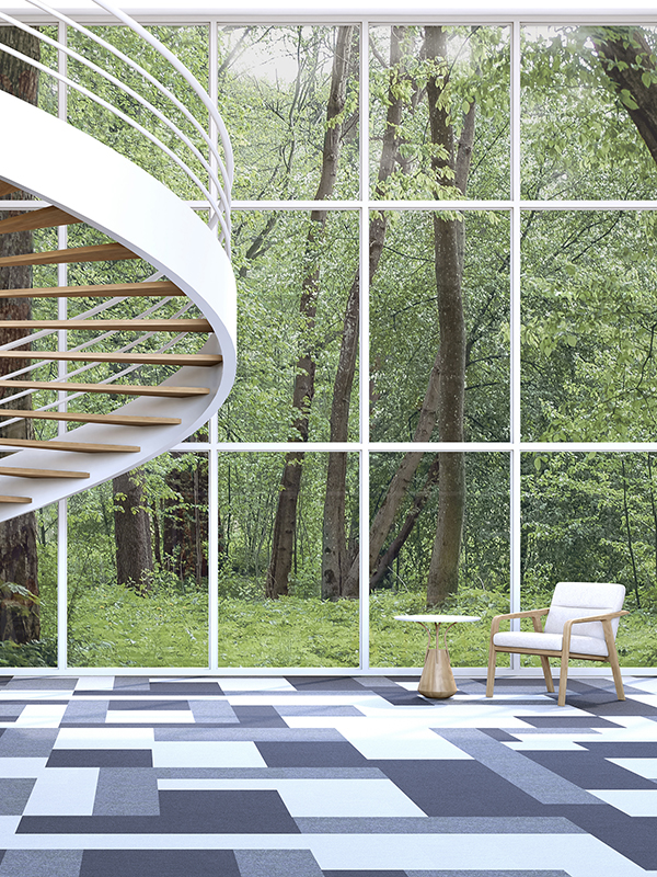 Das in der Nutzschicht verarbeitete Polyamid der Nadelvlieskollektion "Finett Dimension" von Findeisen wird aus ökologisch unbedenklichem Rizinusöl gewonnen. Das biobasierte Polyamid nimmt kaum Luftfeuchtigkeit auf und macht die Nadelvlieselement besonders dimensionsstabil. Die Fliesen und Planken kommen deshalb ohne Schwerbeschichtung aus. Die einzelnen Elemente müssen nicht vollflächig, sondern nur an den Kanten verklebt werden. Der Klebstoff selbst bleibt am Boden, nicht am Vlies kleben, was das Recycling erleichtert. | www.nadelvlies.de