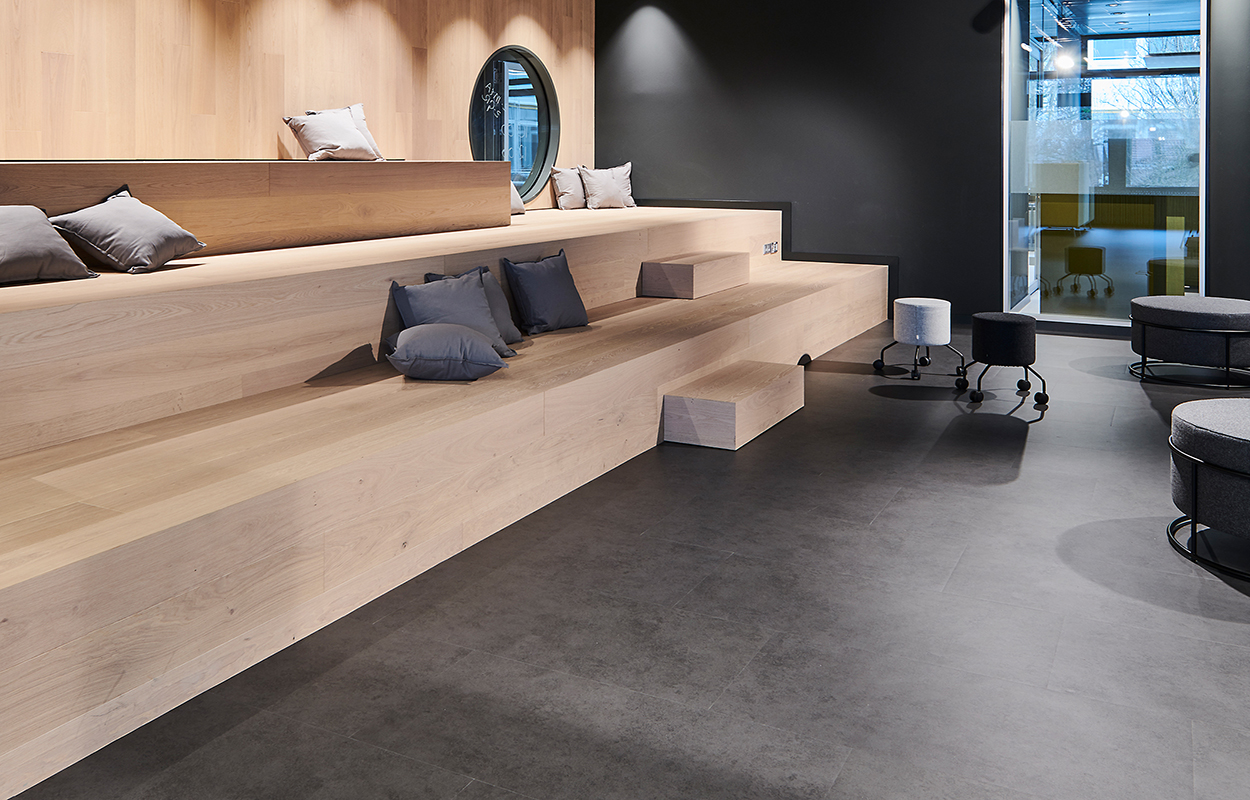 Das Unternehmen Gerflor entwickelt seine Bodenbeläge unter strenger Bewertung einer Lebenszyklus-Analyse. Betrachtet man allein die ersten drei der insgesamt sechs Phasen des Lebenszyklus, nämlich Cradle to Gate, wird das Linoleum CO2-neutral hergestellt. Der Linoleum-Belag wird nach den Prinzipien der Kreislaufwirtschaft entwickelt und erfüllt die strengen Bewertungskriterien der "Cradle to Cradle"-Zertifizierung in Silber. Nicht zuletzt stellen die marktweit einzigartig niedrigen TVOC Emissionen von < 10 μg/m3 nach 28 Tagen eine hervorragende Raumluftqualität sicher. | www.gerflor.de