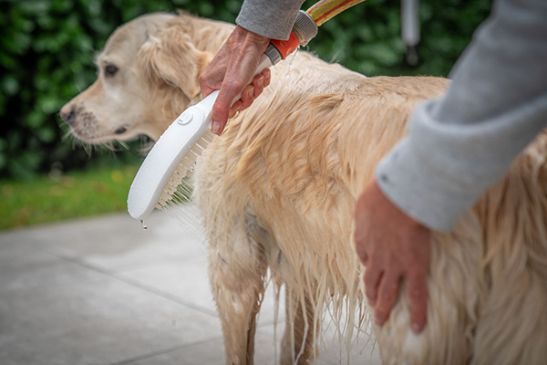 "DogShower" – Die Hundedusche ist oftmals eine besondere Herausforderung für Hund und Hundehalter – auch echte "Wasserratten" suchen dann meist das Weite. Hansgrohe hat nun mit Tierärzten und -Psychologen, Hundefrisören und -besitzern eine spezielle Handbrause entwickelt, die hier Abhilfe schaffen soll. Der innovative Brausekopf verfügt über lange Streichelnoppen, durch die das Wasser gezielt an die schmutzigen Stellen und sogar bis ins tiefe Unterfell gelangt. Der Hunde wird quasi sauber gestreichelt. Dabei verfügt die "DogShower" über drei Strahlarten, die per Knopfdruck eingestellt werden können. Die integrierte Wasserbremse, die bei kurzfristigem Loslassen des Brausegriffs aktiviert wird, reduziert direkt Wassermenge und -druck und vermeidet damit die unliebsame Dusche für den Hundebesitzer, wenn mann doch einmal spontan die Brause aus der Hand legen muss.