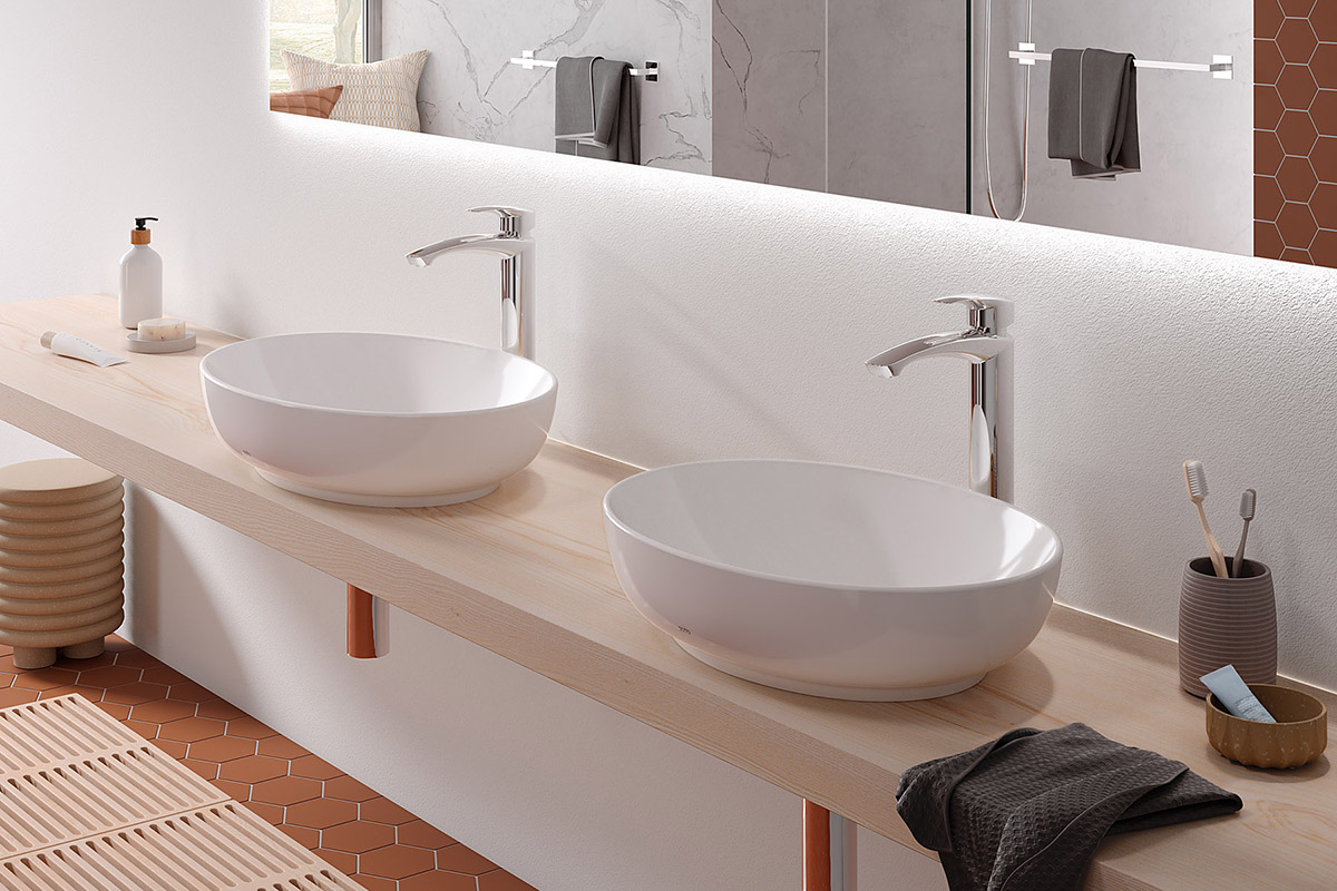 Waschtische – "Cefiontect" ist auch die Spezialglasur, mit der die neuen Toto Aufsatzwaschtische ausgestattet sind und die es ermöglicht, sich dauerhaft an einer leicht zu reinigenden und hochwertig glänzenden Oberfläche zu erfreuen. Erhältlich in rund und eckig, bieten die beiden Modelle der Serie "WU" verschiedene Wahlmöglichkeiten und integrieren sich in verschiedene Badezimmerambiente. Besonders filigran ist die Keramik des leicht asymmetrisch geformten Modells "TA". Toto hat eigens zur Fertigung besonders dünnwandiger und zugleich sehr robuster Keramik ein Verfahren entwickelt, das "Linearceram" genannt wird und beim Modell "TA" zum Einsatz kommt. Das Ergebnis ist laut Toto speziell bei diesem Produkt "eine Verbindung aus Minimalismus und gewohnter Toto-Qualität."