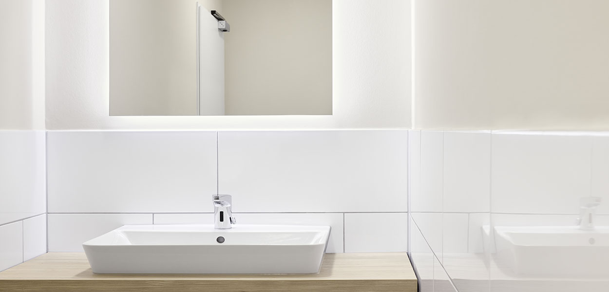 Ebenfalls im Dienst der Hygiene steht die „No-Touch"-Technologie, mit denen die "Ceraplus"-Waschtischarmaturen ausgerüstet sind. Optische Sensoren kontrollieren die berührungslose Wasserabgabe und stellen Wasser nur dann bereit, wenn es tatsächlich gebraucht wird. Auf dieser Linie liegt die Ausstattung der "Connect Air"-WCs mit "AquaBlade"-Spültechnologie inklusiver passender, filigraner WC-Sitze. Durch die glatte, sanft gerundete Oberfläche ohne überstehenden Spülrand reinigt AquaBlade die WC-Schüssel jedes Mal zu 100%. Die innovative Spültechnologie ist zudem bis zu 25% leiser als herkömmliche WCs.