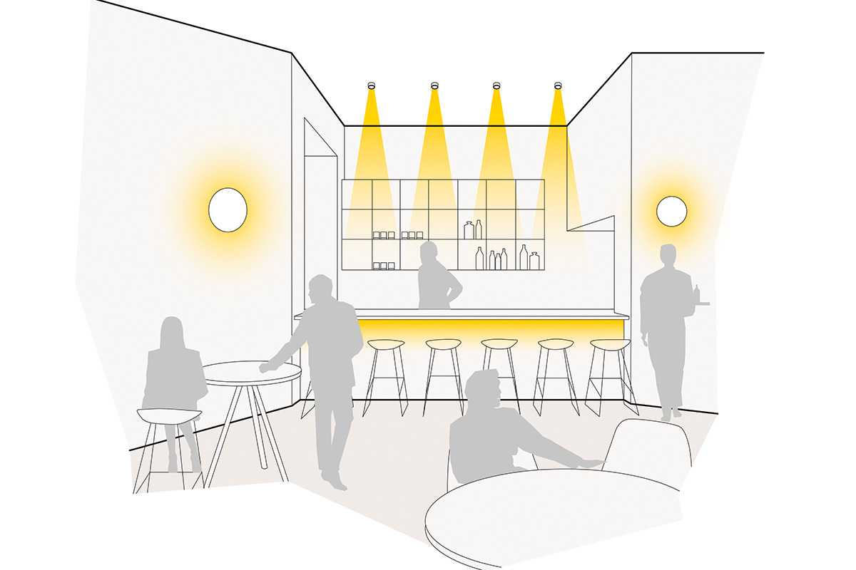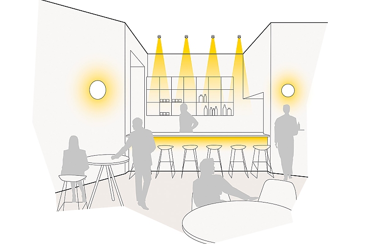 Die Ansprüche an die Aufenthaltsqualität von Räumlichkeiten richten sich maßgebend nach ihrer geplanten Nutzung. In einem Restaurant verweilt der Gast in der Regel länger als in einem Café – entsprechend höher sind die Ansprüche an die Aufenthaltsqualität im Restaurant. Mit einer Lichtplanung, die sich am jeweiligen Nutzungskonzept orientiert, kann das gewünschte Ambiente effektiv unterstützt und sogar verstärkt werden. Schließlich ist es das Lichtkonzept, das den kommunikativen Rahmen bildet: Stimmungsvolle Beleuchtung für ein Restaurant, anregendes Licht für den Frühstücksbereich eines Hotels, einladende Beleuchtung für eine Rezeption und gemütliches Licht für eine Bar oder einen Lounge-Bereich. Aufgabe der Beleuchtung ist es, die für die geplante Nutzung passenden Emotionen zu fördern. Idealerweise ist das Lichtkonzept variabel und flexibel mit Blick auf Helligkeit und Lichtfarbe. Beim Frühstück braucht es helleres, aktivierendes Licht, das Dinner verlangt nach warmer, gemütlicher Beleuchtung. Dementsprechend ist es am besten, wenn sich das Licht an die wechselnden Anforderungen im Tagesverlauf anpassen lässt.