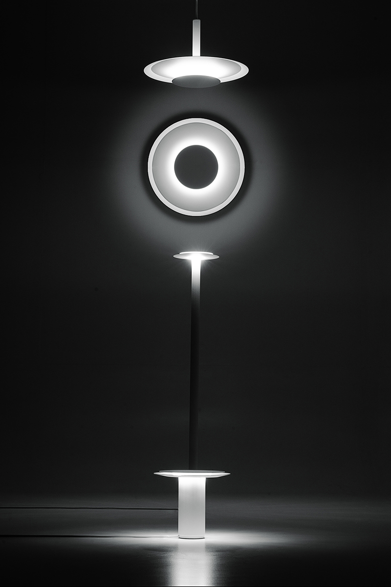 Der kreative Ausgangspunkt für Designer Jörg Boner war die Idee, dass das innere Licht die äußere Form der Leuchten bestimmen soll. Boners Entwürfe tragen diesem Konzept Rechnung, indem weder die Platine noch der Diffuser für den Betrachter jemals sichtbar sind. Gleichzeitig strahlt über nur eine einzige Platine sowohl direktes als auch indirektes Licht in den Raum. Die weiß lackierten Aluminiumschirme, hergestellt in Schättis eigener Produktion, schaffen eine einzigartige Ästhetik, bei der neben der Helligkeit nur noch die reflektierenden Flächen der Leuchten wahrnehmbar sind.
