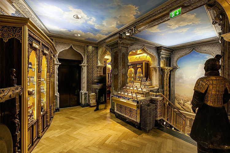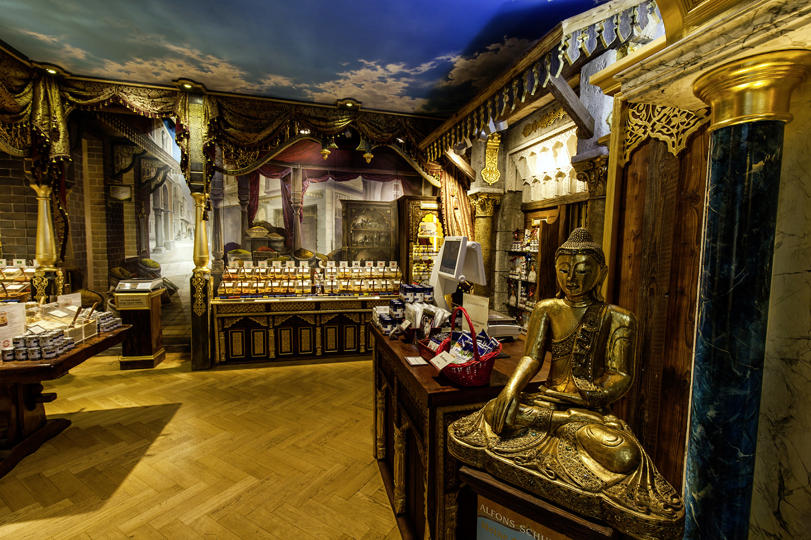 Das Feuer des Orients und die Exotik Asiens waren die Leitmotive bei der Umgestaltung von Alfons Schuhbecks Gewürzladen am Münchener Platzl. Der seit 2003 bestehende Flagshipstore wurde unlängst als opulente Erlebnis-Shoppingwelt auf zwei Etagen und insgesamt rund 300 qm neu eröffnet. In Anlehnung an einen orientalischen Basar kreierten Kunsthandwerker und Kunstmaler aufwendige Decken- und Wandmalereien, üppig verzierte, teilweise vergoldete Möbel und Skulpturen, Vouten und Kuppeln, die dem Kunden die Atmosphäre ferner Länder und exotischer Städte – Provenienzen der angebotenen Gewürze – nahebringen sollen. Erco-LED-Lichtwerkzeuge zonieren Alfons Schuhbecks feine Welt der Gewürze, geben Orientierung innerhalb der exotischen Warenwelt und präsentieren die delikaten Produkte optimal.