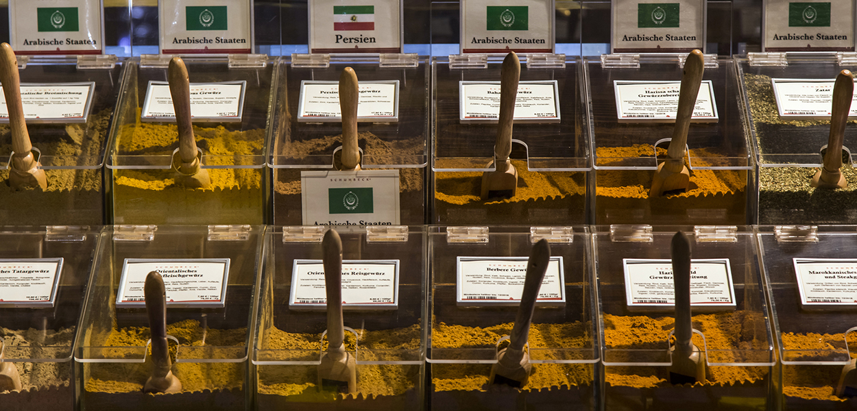 Sternekoch Alfons Schuhbeck betreibt am Münchener Platzl eine ganze Gourmetwelt. Das Herz bildet der Gewürzladen, in dem Erco-LED-Strahler und -Downlights exotische Geschmackskreationen im Ambiente eines Basars professionell und aufmerksamkeitsstark in Szene setzen.