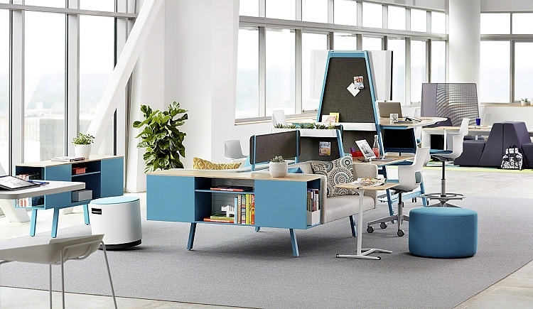 Das modulare Tischsystem "Bivi" von Steelcase bringt mit seinem besonderen Design und praktischen Funktionen Start-Up-Ambiente an jeden Arbeitsplatz. Inspiriert von der Kultur erfolgreicher junger Unternehmen ist das innovative Produkt weit mehr als nur ein Tisch. Der Aufbau folgt einem modularen Konzept – so lässt sich das Tischsystem mit wenigen Handgriffen den Bedürfnissen von Nutzern und Unternehmen individuell anpassen.