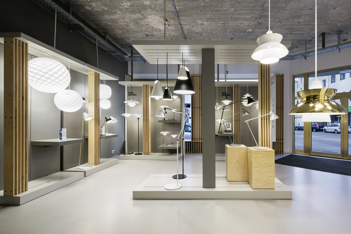 Über dem neuen Showroom befindet sich das Office der ältesten Niederlassung von Louis Poulsen außerhalb Dänemarks. Bereits seit 1962 ist die Louis Poulsen Germany GmbH im Großraum Düsseldorf aktiv und betreut von dort aus die Märkte Deutschland, Österreich, Schweiz und Niederlande. Düsseldorf beherbergt nun nach Kopenhagen, Helsinki, Stockholm, Paris, Tokio, Singapur, Lysaker (Norwegen), Fort Lauderdale und Los Angeles die weltweit zehnte exklusive Ausstellungsfläche für Louis-Poulsen-Designs.