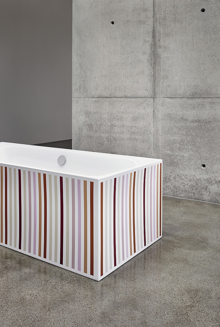 Gezeigt werden Badezimmerkreationen, Installationen, Foto-Inszenierungen im Kontext gesellschaftlicher Entwicklungen, aktueller Gestaltungstrends und technologischer Innovationen. Fliesen, Badmöbel, Waschbecken und Badewannen erhalten im kommenden Jahr neue farbliche Ausdruckskraft – mal dezent Ton-in-Ton, mal selbstbewusst in Rot oder sogar mehrfarbig. Das Badezimmer erfährt eine weitere Aufwertung als vielfältiger, bunter und lebensbejahender Rückzugsort und treibt Lifestyle-Trends voran. Mix and Match mit lackierten Vintage-Stücken, Boho-Teppichen und Kissen haben bereits seit Längerem in anderen Wohnbereichen wie Wohnzimmer oder Küche, Einzug erhalten – nun verzaubert die neue Farbigkeit mit unterschiedlich stilvollen Akzenten das Bad.
