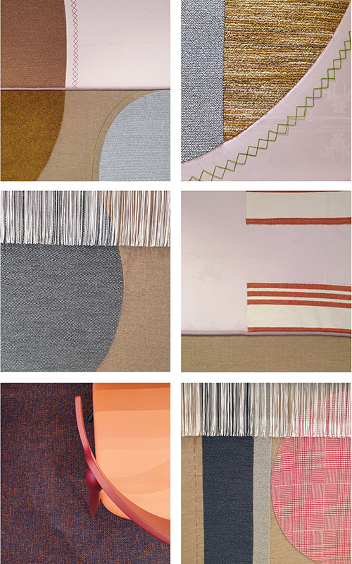 Fünf der insgesamt acht Qualitäten der neuen Kollektion sind auch im Restaurant "La Visione" eingesetzt: "Flow x Glow", "Deal x Feel", "Meat x Beat", "Move x Groove" und "Skill x Chill". Die Produktnamen suggerieren unterschiedlich gelagerte Gesprächsatmosphären. Dabei stehen 111 verschiedene Farbstellungen und acht Schlingenkonstruktionen zur Auswahl, mit denen sich die gewünschten Kommunikationssituationen unterlegen lassen. Strapazierfähig, staubbindend und aus 100% recyceltem Econyl-Garn gefertigt sind sie aber alle.