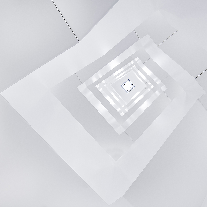 Voller architektonischer Raffinesse und lebhafter Schwarz-Weiß-Kontraste empfängt das Treppenhaus Besucher und Mitarbeiter. Raumhoch verglaste Arbeitsräume bieten einen weiten Blick über das Areal und vielfältige Nutzungsmöglichkeiten.