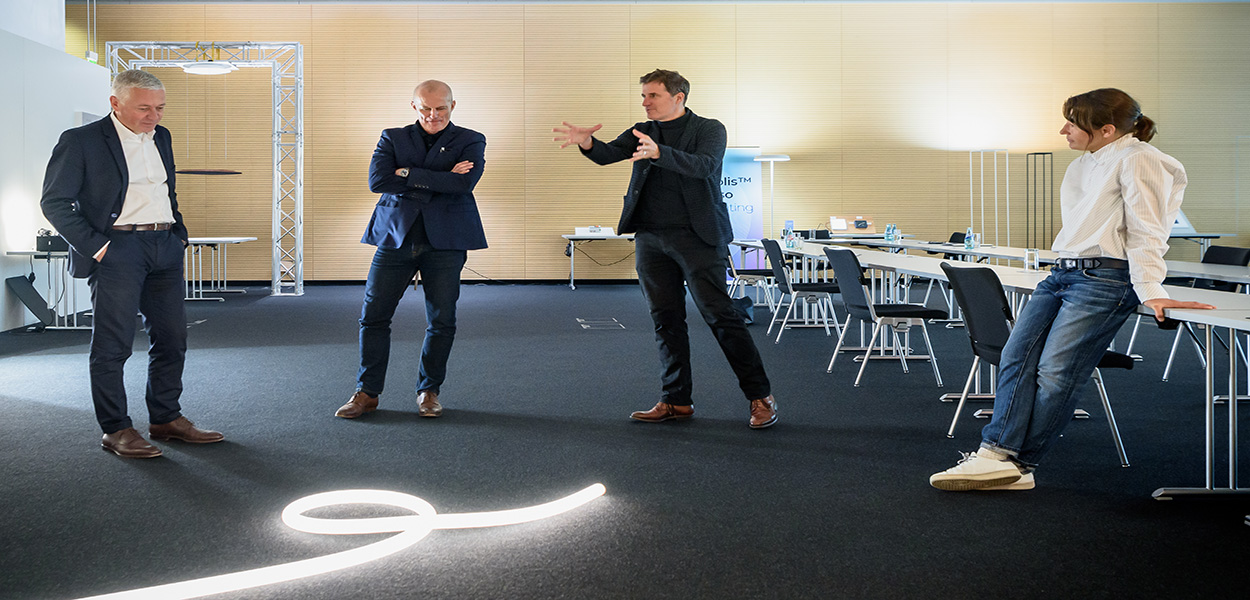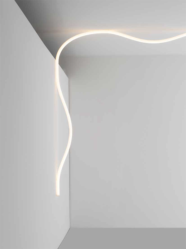 Der Beleuchtungskörper ist biegsam und passt sich damit jeder denkbaren Raumstruktur an. La Linea mache Licht zu einem Instrument mit minimaler Präsenz, "das im Freien, auf Fassaden, in Parks oder im Stadtumfeld Gemeinschaftsbereiche aufwertet, soziale und partizipative Landschaften gestaltet und eine immer vollständigere Interaktion mit Raum und Mensch erzeugt", so der Hersteller.