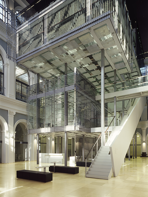 Mut und Innovationskraft, beides zusammen hat vor mehr als einem Jahrzehnt zu einem aufsehenerregenden Projekt geführt: Unter Beachtung des Denkmalschutzes und der historischen Bausubstanz hatte das Team von Behnisch Architekten den gläsernen Kubus als "Haus im Haus" in die Börsenhalle eingesetzt.