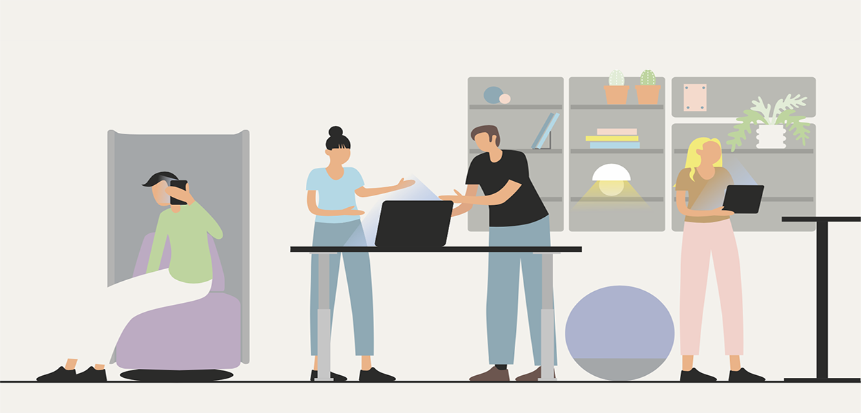 Auch wenn die Arbeit von zu Hause aus je nach Unternehmen und Individuum unterschiedlich erfolgreich ist, verfestigt sich der Wunsch nach zeitlicher und räumlicher Flexibilität von Arbeit. Daraus ergeben sich neue Anforderungen an Arbeitsweisen und die Gestaltung von Büroräumen.