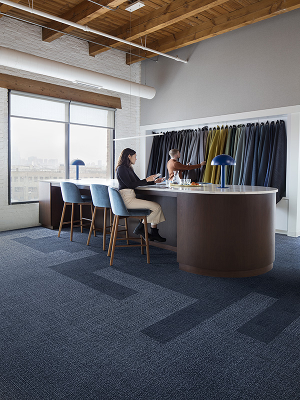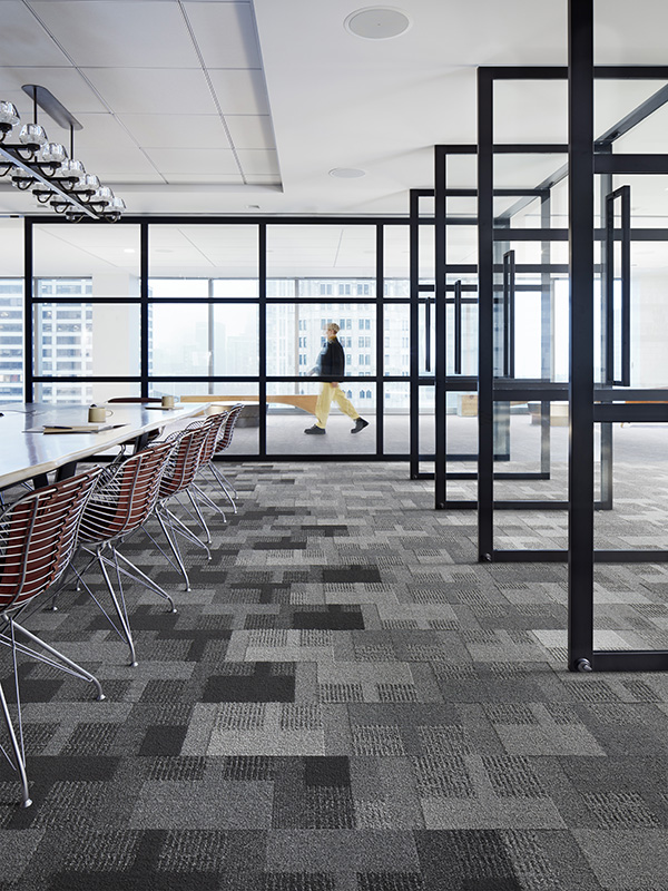 "Als unsere erste Kollektion, die CO2-negative Produkte enthält, bringt Embodied Beauty die Idee auf den Punkt, mit der Natur im Einklang zu arbeiten – ein Konzept, das in der japanischen Kultur oft betont wird", sagt Pei. "Dies hat die Ästhetik im Design inspiriert und eine Fülle an Texturen, Farben und Kontrasten hervorgebracht, die wir in die Gestaltung einbeziehen konnten. Bei genauer Betrachtung der unterschiedlichen Stile erkennt man auch Elemente von Kintsugi, der Kunst, aus zerbrochenen Objekten etwas Neues und Schönes zu erschaffen, und Sashiko, einer Form des dekorativen Nähens. Mit den Teppichfliesen entsteht ein edler Boden, der Ausgeglichenheit und Anmut widerspiegelt und praktisch in jeden Raum passt."