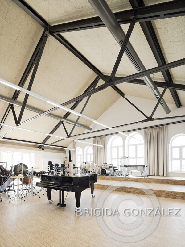 Diese "dienenden" Räume der Kulturproduktion und der Ausbildung überwölben sinnbildlich die Schaubühnen für das kulturinteressierte Publikum. Wichtig war es den Architekten, mit historischen Komponenten wie Materialien, Befensterung und sichtbarer Dachkonstruktion ein authentisches und eigenständiges Ambiente für die unterschiedlichen Kulturstätten zu gestalten. "Das gesamte Material- und Gestaltungskonzept orientiert sich an der Entwurfsidee, die Industriearchitekturen des 19. und 21. Jahrhunderts auf vielfältige Weise miteinander in Beziehung zu setzen", so Hellmut Schiefer, Projektleiter und leitender Architekt.