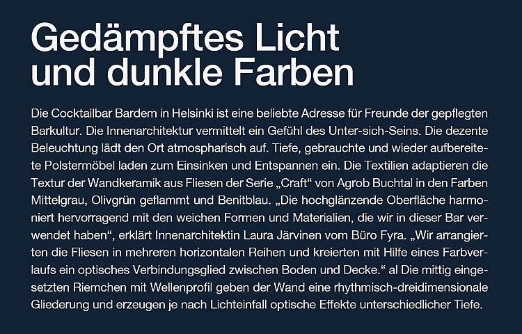Die Kollektion "Craft" ist ja eine sehr urwüchsige, archaische Fliesenserie …