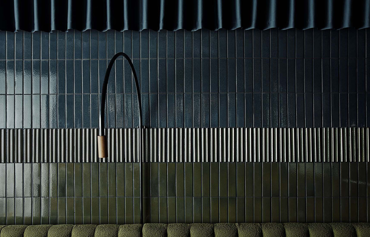 de Campanaere: Ja richtig. Ich hatte die Serie bei unserem örtlichen Fliesenhändler entdeckt und war sofort fasziniert von den hochglänzende Glasuren, der imposanten optischen Tiefe und dem lebendigen Farbspiel. Ich war mir sicher, dass mich die Serie zu einem ganz besonderen Gestaltungsentwurf inspirieren würde. Ich musste nur noch auf das passende Projekt warten. Das besagte private Wohnprojekt war dann die perfekte Gelegenheit.