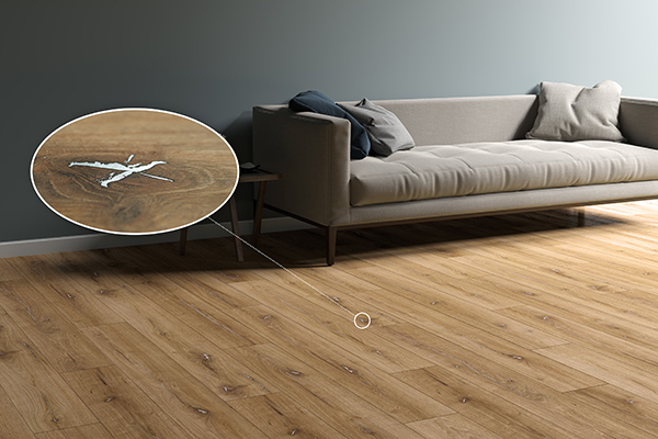 "Canyon Flagstaff Oak" (o. l.): Ein Eichendekor in Altholz-Optik. Besonderes Highlight: markante, tiefe Risse, die per Effektpigment silber gehighlightet wurden. Die besondere Zinnoptik verleiht dem Dekor noch mehr Tiefe und Einzigartigkeit. Der extravagante Charakter setzt eine moderne und dennoch rustikale Note im Wohnen.