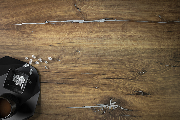Mit "Flagstaff Oak" orientiert sich Schattdecor an dem Trend nach Metallic-Effekten im Oberflächenbereich. Als Basis diente Altholz, das aufgrund seiner in die Jahre gekommenen Struktur eine ideale Vorlage bot. Die markanten Risse und Asteinschlüsse stützen die dadurch erzielte Rustikalität nochmals und werden besonders durch die zinnartigen Einschlüsse in Silber-, Bronze- oder Kupferfarben betont.