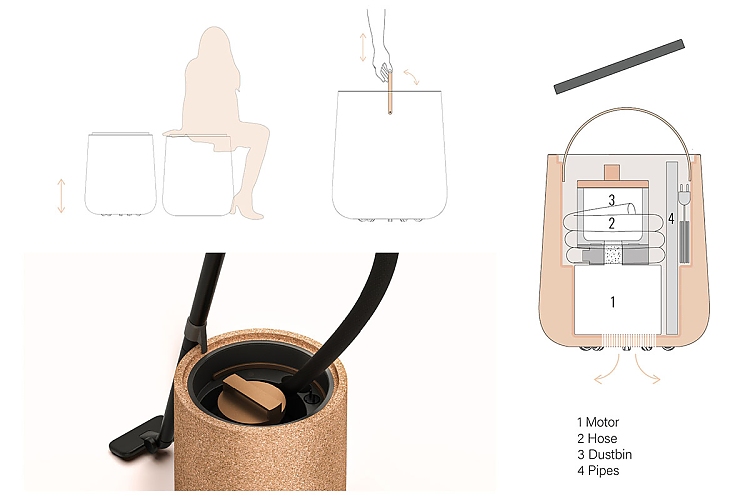 Unser Wohnraum ist eine kostbare Fläche, die wir nur ungern unverzichtbaren Haushaltsgeräten überlassen. Ivo Erichsen (l.) und Tobias Bihlmeyer (Fachhochschule Potsdam) haben mit "Super Vacuum Cleaner" einen Staubsauger entwickelt, der sich weder verstecken muss, noch wertvollen Stauraum kostet, sondern auch als Sitz-Hocker, Aufbewahrungsmöbel und Design-Objekt dient. Selbst die äußere Erscheinung des Staubsaugers macht ihn zu einem Hingucker im Raum. Die jungen Designer setzen auf natürliche Materialien wie Kork und Holz für die äußere Verkleidung, die in Verbindung mit einer vertrauten Formgebung stilistisch in fast jeden Wohnraum passt.