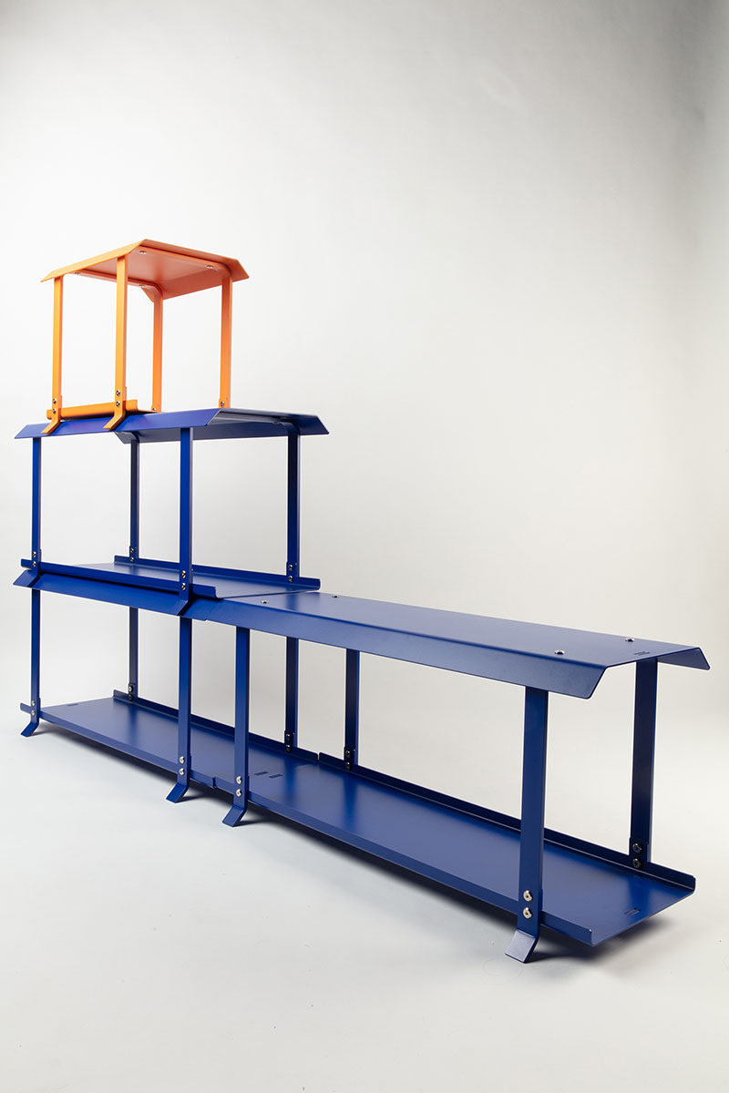 Esszimmer, Wohnzimmer oder Büro: Das aus Aluminium gefertigte Möbel "Frugal M.F.S." von Merlin Everding (Universität der Künste Berlin) ist dank seines anpassbaren Designs in ganz unterschiedlichen Kontexten einsetzbar. "Frugal M.F.S." ist ein Regal- und Aufbewahrungssystem, kann aber genauso als Sitzbank oder Ablagefläche genutzt werden. Bestehend aus einem Grundmodul und erweiterbaren Elementen passt sich dieses modulare Möbel verschiedenen Bedürfnissen an, die an das Mobiliar in Wohn- und Arbeitsräumen gestellt werden.