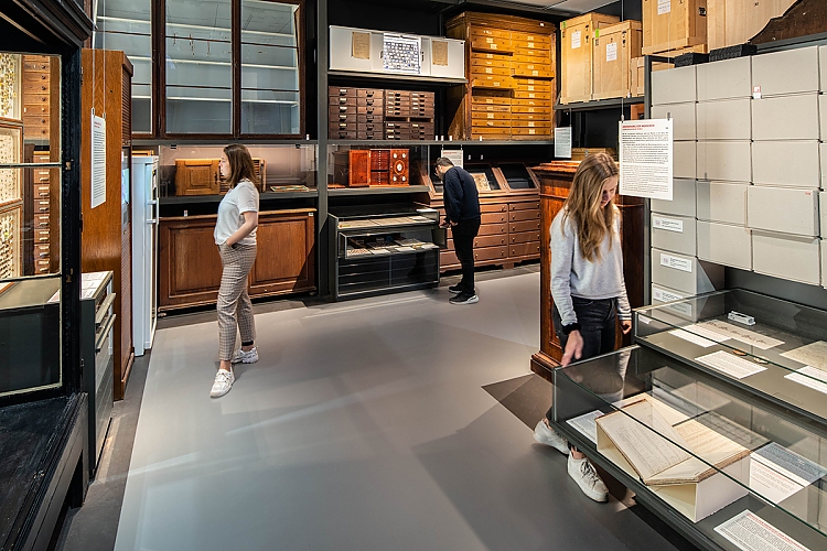 Er ist dicht an dicht mit Staumöbeln bestückt, die in ihrer Anordnung ebenfalls Ordnungsprinzipien wie Größe und Gewicht folgen. Schränke für Akten, Zeichnungen, Mineralien, Münzen und andere Preziosen sowie Kommoden und Vitrinen mit Schubladen prägen das Raumbild. Manche stehen offen, wecken die Neugier auf den Inhalt und führen zu darin hinterlegten Informationen. Aus dem Blickwinkel einer Maus erkundet der Besuchende den Raum Schreibtisch. Notizblock, Bücherstapel, Schreibtischlampe und Notebook sind zehnmal größer als in Wirklichkeit. Hier geht es um das Erfassen und Beschreiben – eine Riesen-Aufgabe. Der Raum Markt widmet sich schließlich der Bewertung. Der Besuchende betritt gleichsam einen Messestand, an dem er seine auf dem Smartphone gesammelten Objekte tauschen und mit Blick auf ihren finanziellen, ideellen oder auch ästhetischen Wert einordnen kann. Die Frage "Welchen Wert haben die Sammlungsobjekte? Welchen Wert hat Wissenschaft?" stellt sich.