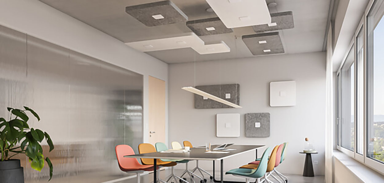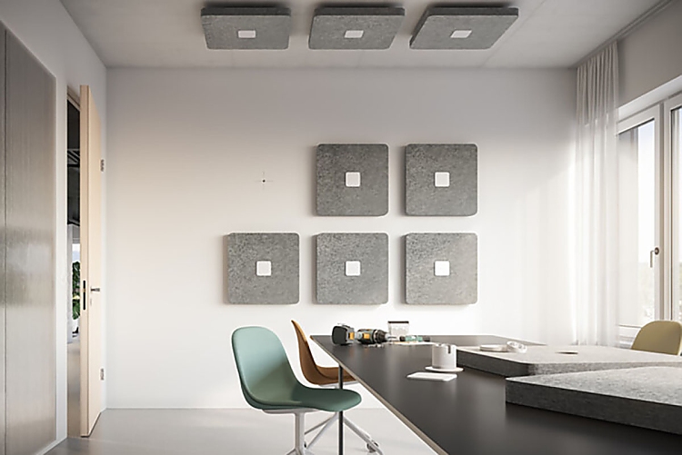 Die Nimbus Group zählt mit der Marke Rossoacoustic zur Häfele Unternehmensgruppe und bietet mit dem neuen System auch eine Lösung für das Schreinerhandwerk und den Innenausbau an. "Disc'n Dots" ist die "einfache" Variante im Vergleich zum Rossoacoustic Pad-System, das bereits in zahlreichen Projekten eingesetzt wird – oft auch zusammen mit dem Lighting Pad, einem integralen Licht-Akustik-Produkt, das an seiner Unterseite ein Akustikvlies mit markanten Softprägungen und integrierten LED-Lichtquellen zeigt.