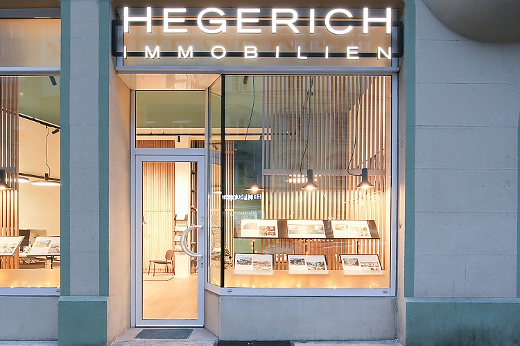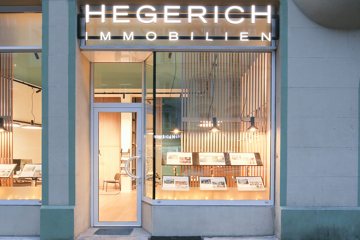 Hegerich Immobilien ist mit der Gestaltung seiner neuen Zweigstelle in München-Schwabing ein Hingucker gelungen, die geschickt Akzente in der sonst eher klassisch anmutenden Welt der Maklerbüros setzen kann.