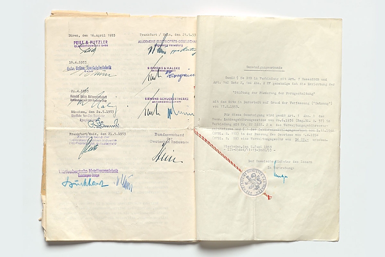 Genehmigungsurkunde zur Errichtung der "Stiftung zur Förderung der Formgestaltung". (1953) Foto: Rat für Formgebung
