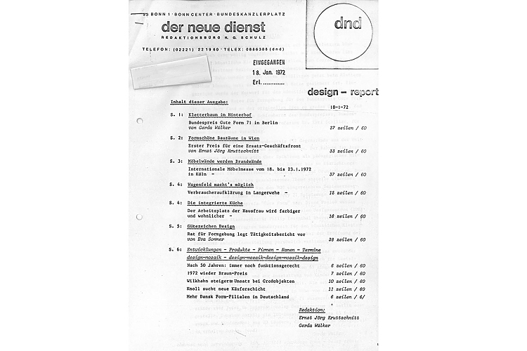 Bereits ab 1948 gibt es Bestrebungen seitens des Deutschen Werkbunds, einen Rat für Formgebung zu konstituieren. Er soll die "Gute Form" der Produkte aus Handwerk und Industrie fördern. Stärkstes Argument für die Gründung einer solchen "Stiftung zur Förderung der Formgestaltung" ist die New Yorker Exportmesse 1949: Die deutschen Produktbeiträge erhalten hier so schlechte Kritiken, dass der Deutsche Bundestag dringenden Handlungsbedarf sieht. Daher beschließt er 1951, den unabhängigen Rat für Formgebung zu bilden. Dies setzen der Bundesverband der Deutschen Industrie und einige führende Firmen 1953 um und gründen den Rat für Formgebung als Stiftung mit öffentlichem Auftrag. Seine Mission: Die Wettbewerbsfähigkeit der deutschen Industrie zu fördern und für die Verbraucher die bestmögliche Designqualität deutscher Erzeugnisse sicherzustellen.