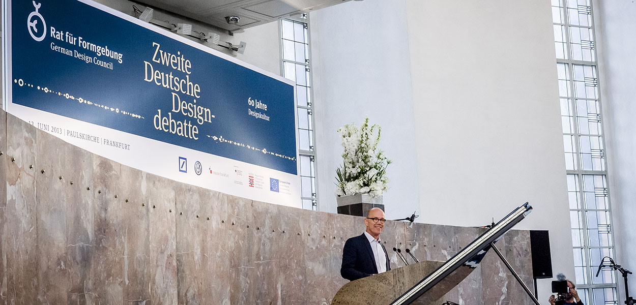 Zum 60-jährigen Jubiläum 2013 war Erik Spiekermann Sprecher bei der Zweiten Deutschen Designdebatte in der Frankfurter Paulskirche. Foto: Rat für Formgebung / Ulrich Schepp